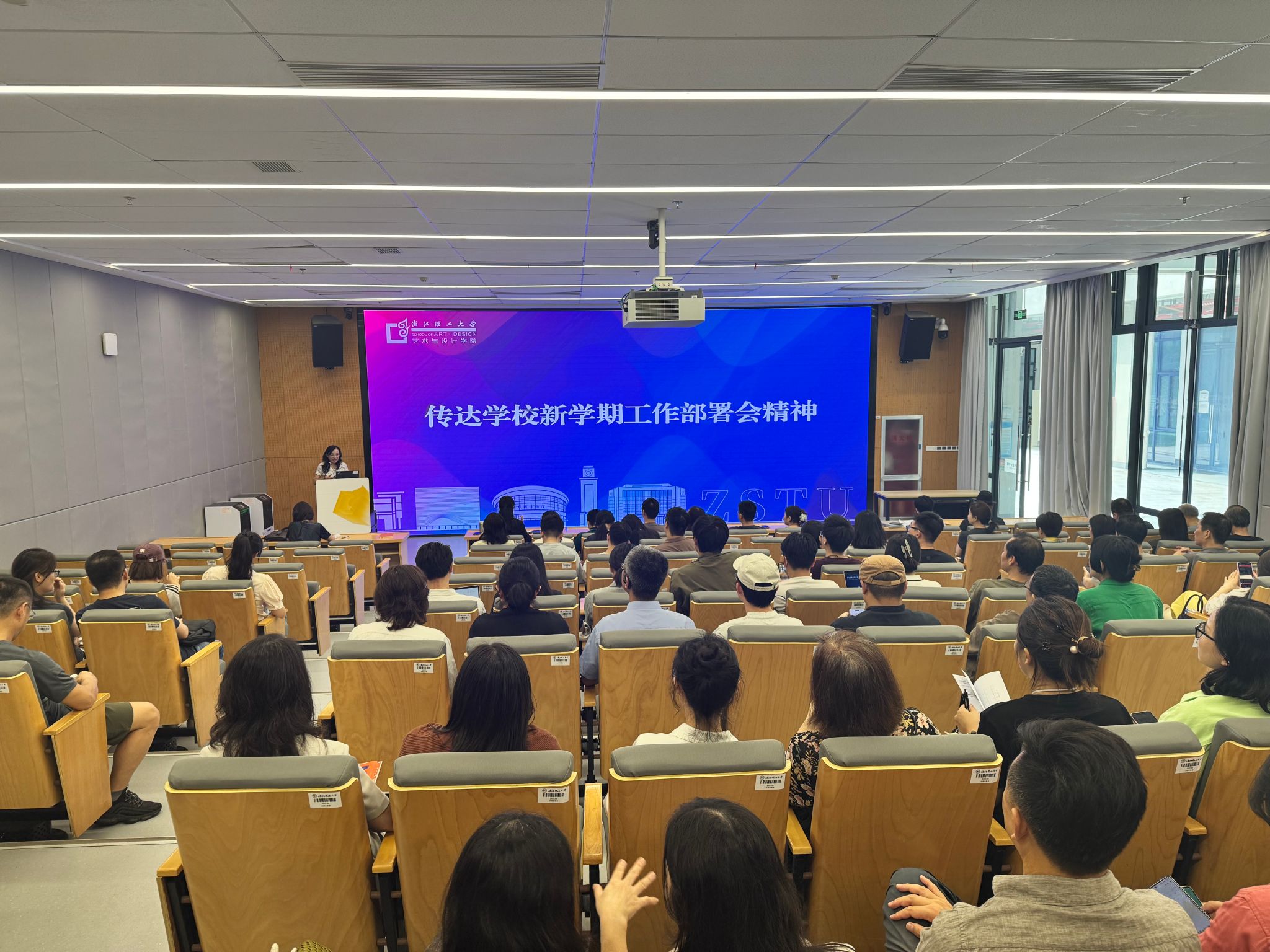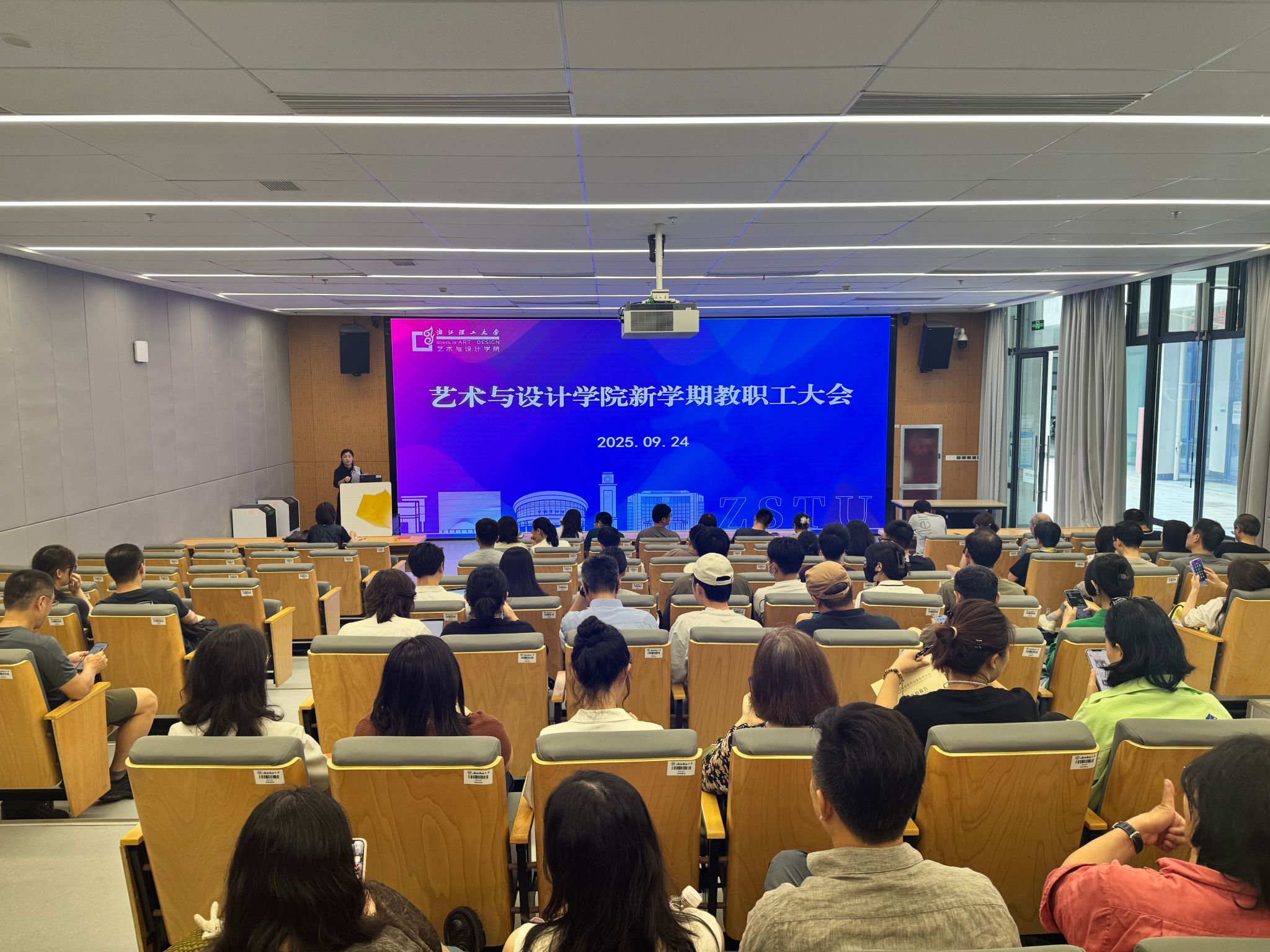 2025年9月24日下午,艺术与设计学院在临平校区召开新学期教职工大会,传达学校工作部署精神,总结学院上半年成果并部署下半年重点工作。学院领导班子及全体教职工参会。会议由党委书记吕旻主持。