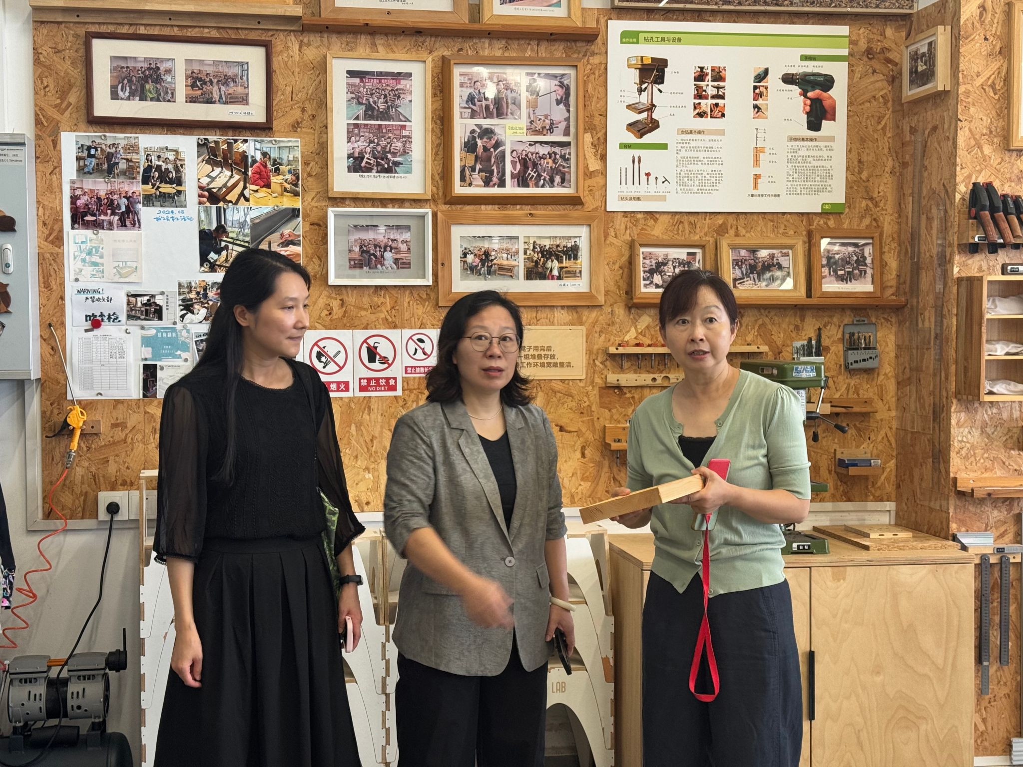 座谈会后,调研团队参观了实验中心木工坊等教学实践场所,并实地走访了李加林教授展厅,通过现场观摩和细致讲解,对我院教学设施、科研成果及艺术创作有了更为直观和深入地了解。