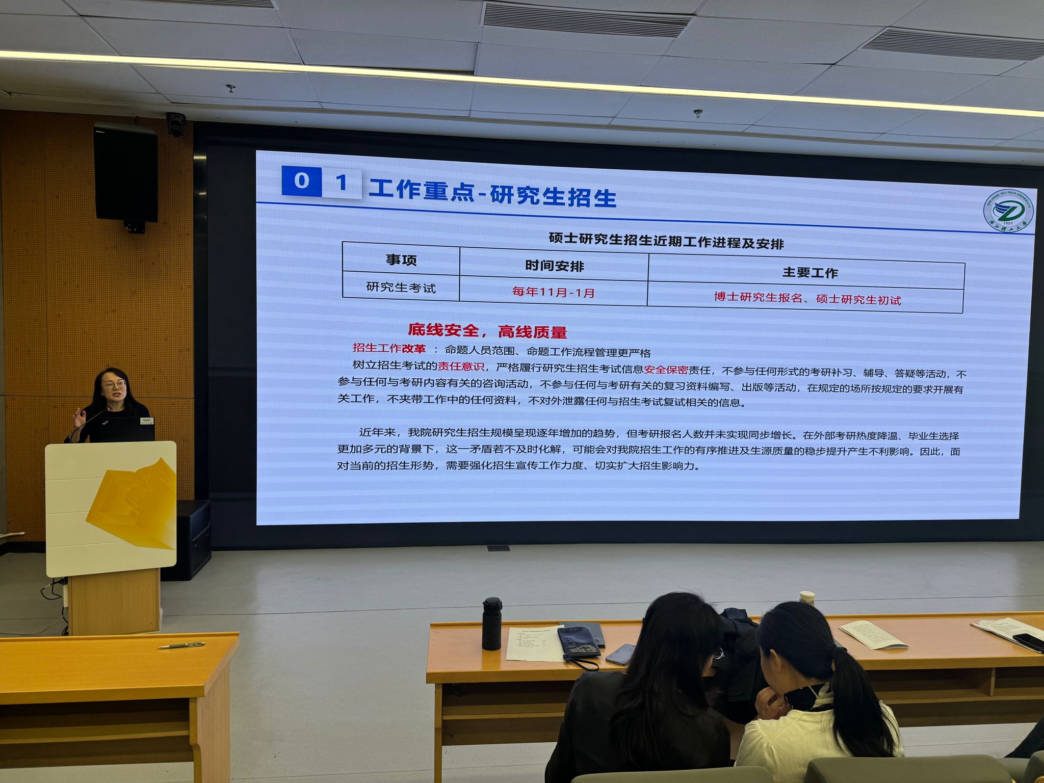 副院长刘杨部署研究生培养与学科建设任务,重点围绕三个核心展开:加强招生宣传,强化培养过程管理。通过明确导师责任,提升论文质量,推动成果高水平产出,落实全过程质量监控等。