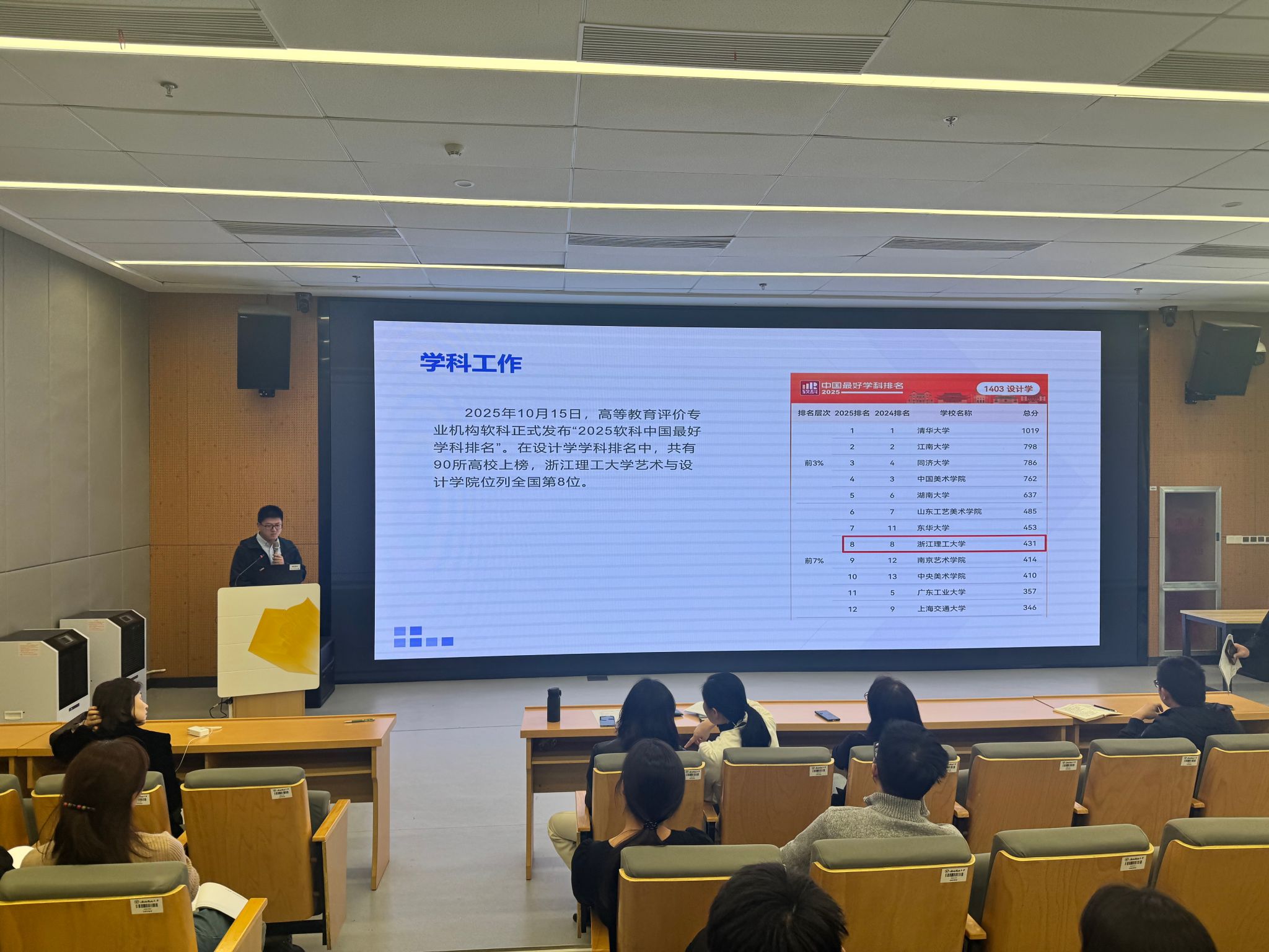 工业设计系教师张祖耀以“浙江省大学生工业设计竞赛”为例,分享了赛事组织经验与成果,激励教师引导学生参与高水平竞赛。