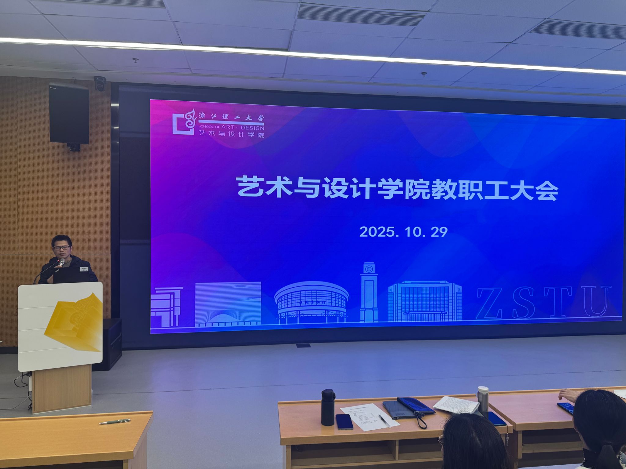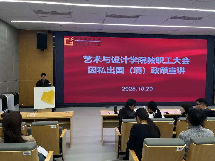 2025年10月29日下午,艺术与设计学院在临平校区L5-113会议室召开教职工大会,围绕学校发展战略和学院重点任务展开部署。会议由院长高颖主持,学院领导班子及全体教职工参会。