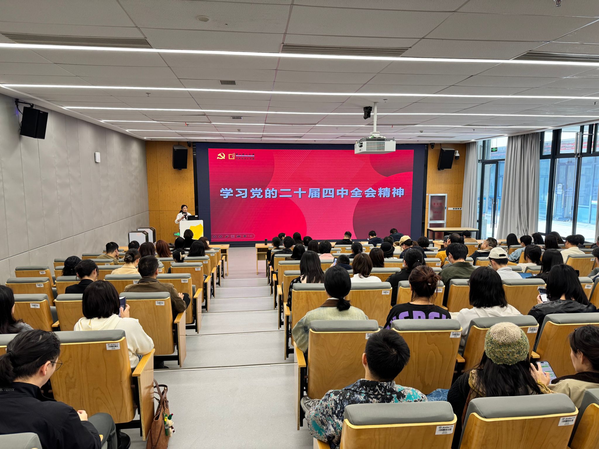 党委书记吕旻领学党的二十届四中全会精神,结合学院实际提出贯彻落实要求。会议强调,全体教职工需将党的创新理论融入教育教学与学科建设,以思想引领推动学院高质量发展。