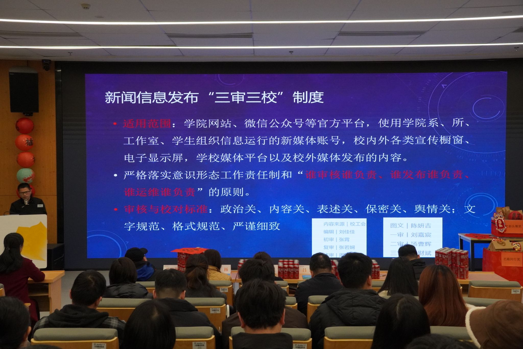 党委副书记阮财斌传达了学校关于校园新媒体建设及新闻信息制度文件精神,要求严格落实意识形态工作责任制,确保信息发布政治安全与内容规范。会上,阮财斌还号召全体教职工积极推荐校友资源,为学院发展、学生就业拓宽渠道、谋求更多合作机会与支持。