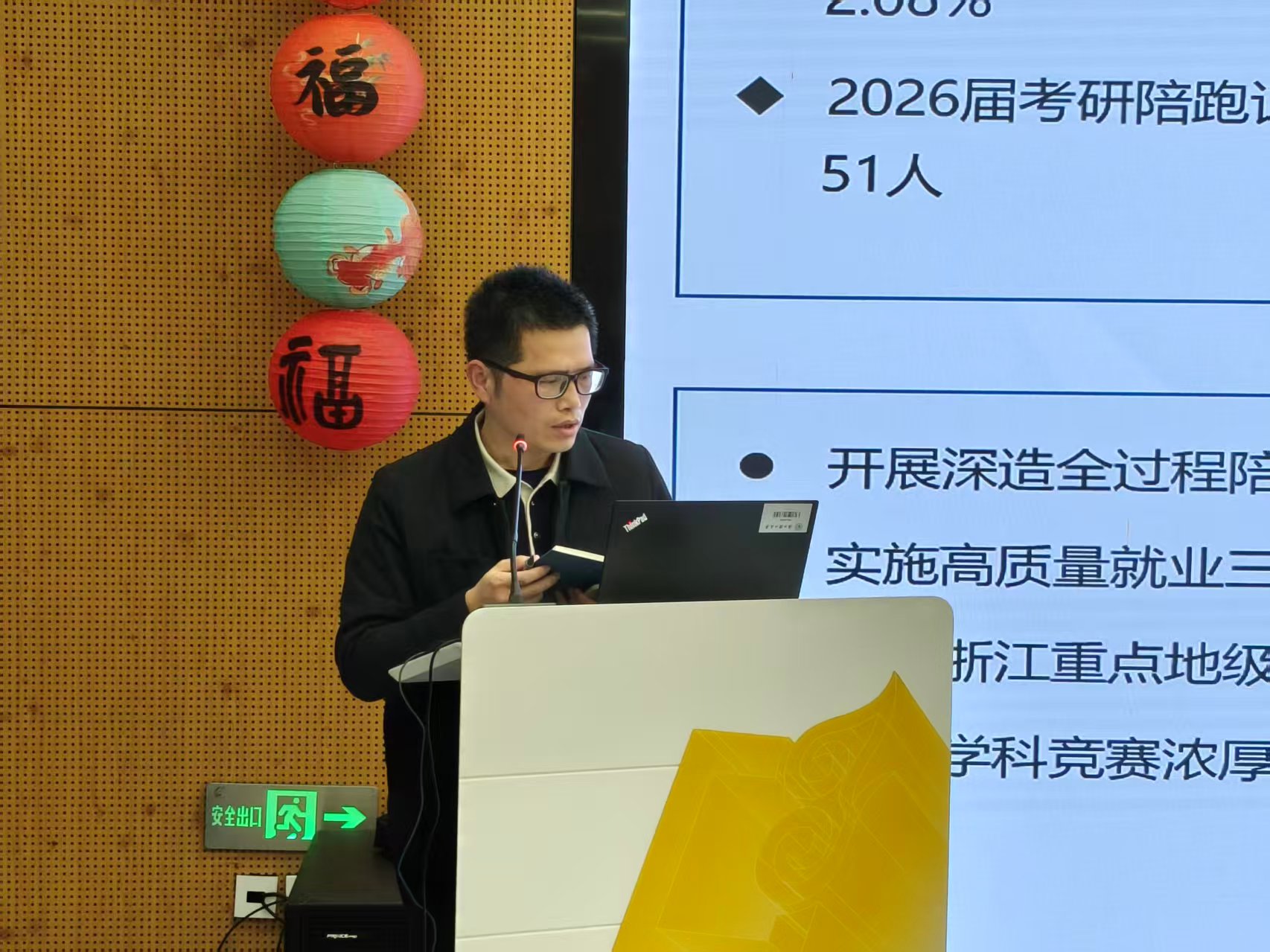学院副书记阮财斌、副院长刘杨、来思渊、李碧分别进行2026年分管工作部署:抓实升学就业与人才培育,强化学科竞赛引领,全面提升人才培养实效;围绕提质攻坚完善培养体系,着力提升研究生育人水平;聚焦教学改革创新与课堂模式升级,不断提升本科教学质量;紧盯高层次科研项目申报,深化国际交流合作,持续增强学科国际影响力。会上还部署了安全专项工作,强调了全院教职工要统一思想、凝聚共识,紧扣学校和学院发展战略,切实将各项工作部署落到实处,为学院高质量发展筑牢根基。