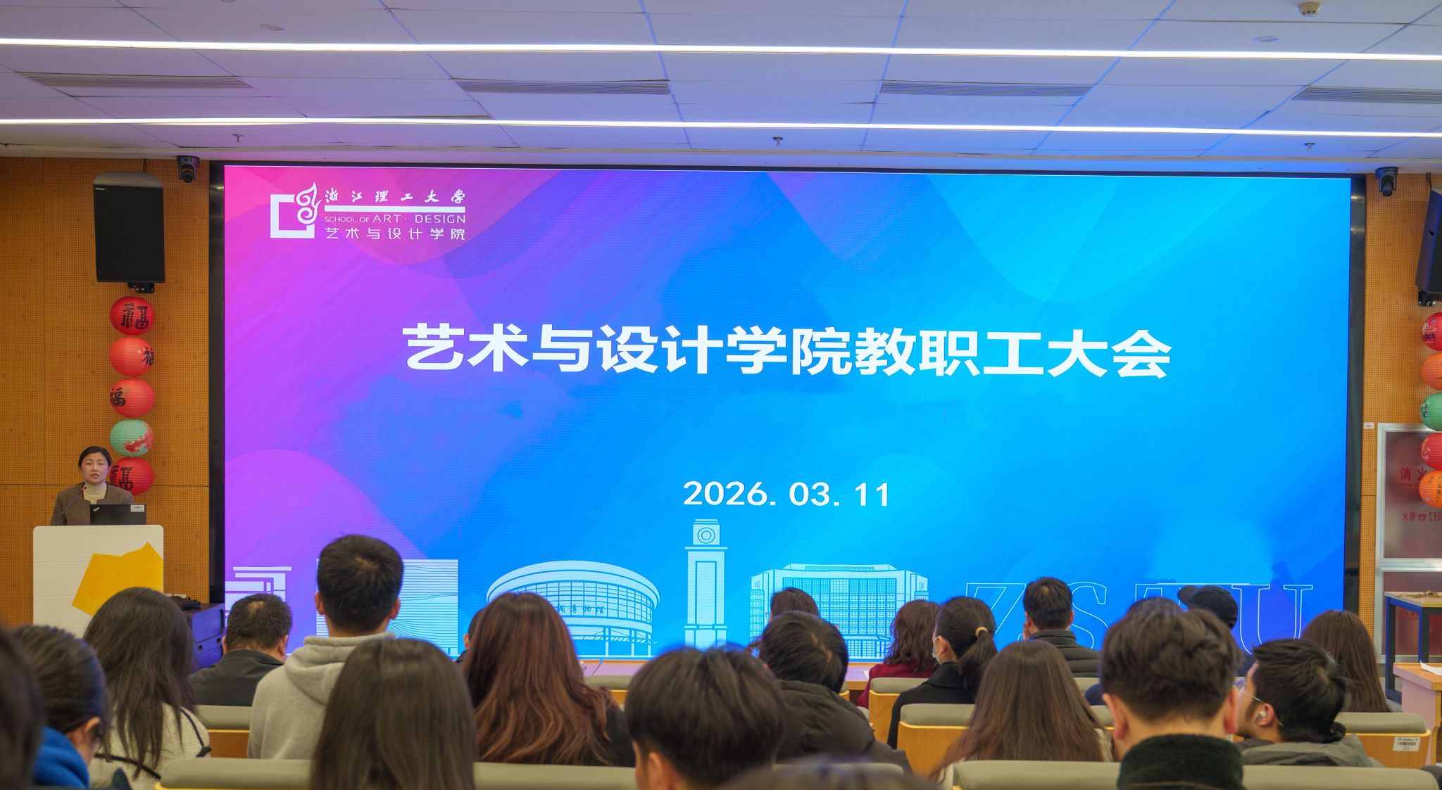 3月11日下午,艺术与设计学院“2025年度贡献奖”表彰大会暨新学期工作部署会在临平校区L5-113会议室召开。会议表彰2025年度荣获学院突出贡献奖的集体和个人,进行2026年工作部署,并进行了专项培训。会议由学院党委书记吕旻主持。