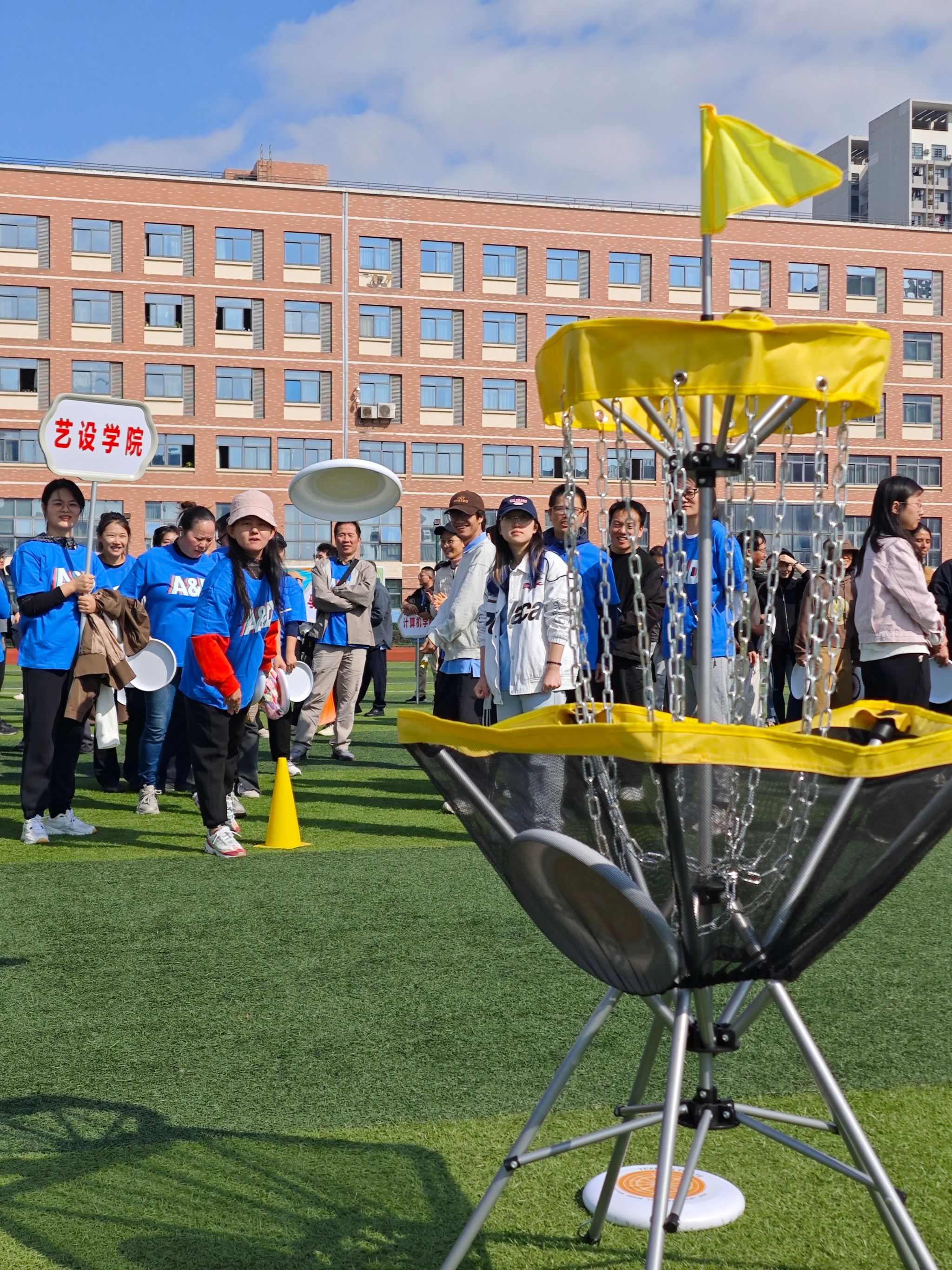 “极限飞盘”赛场充满了动感与激情,一道道优美的弧线划破长空,每次飞盘在飞盘架内的精准降落,都让大家无比激动。
