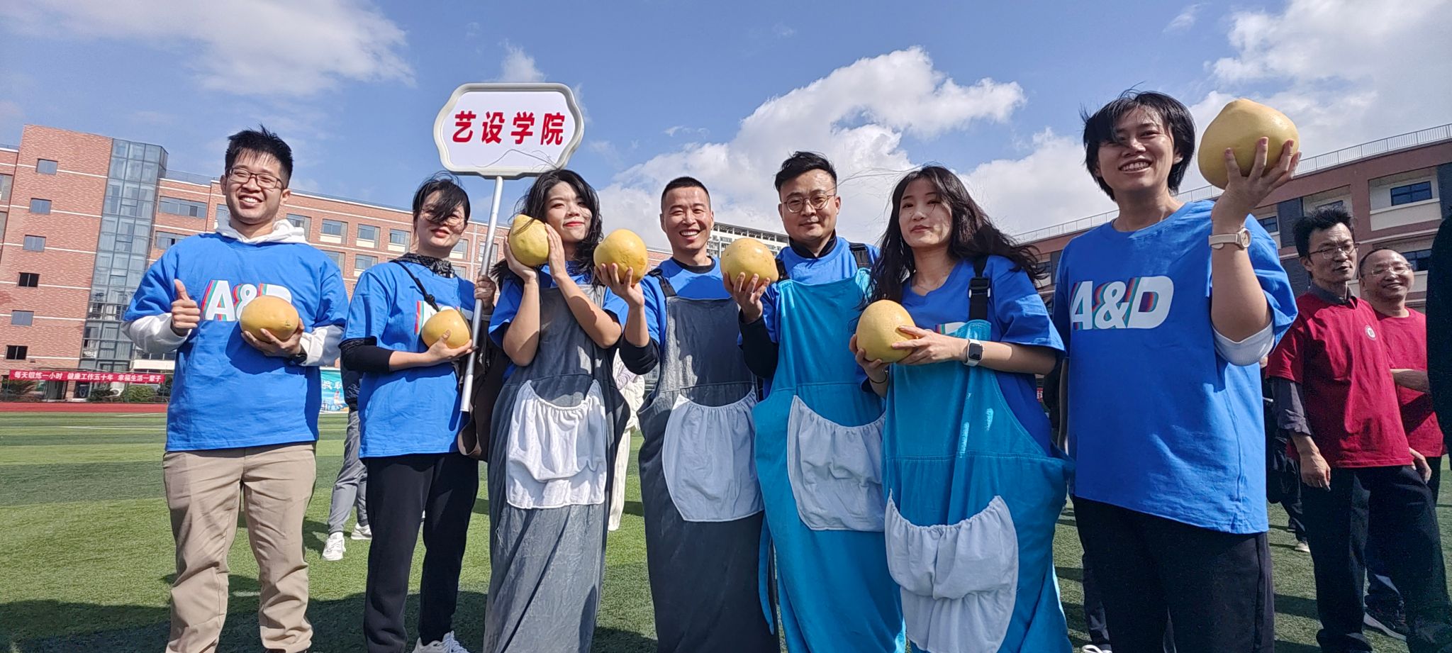 “袋鼠搬瓜”则笑点频出,老师们化身可爱的“袋鼠”,双手抱“瓜”,奋力跳跃前进,萌态可掬的动作让场边加油的师生们笑声与掌声不断。激烈的竞争中,最后一个“瓜”也被收入艺设学院团队囊中。